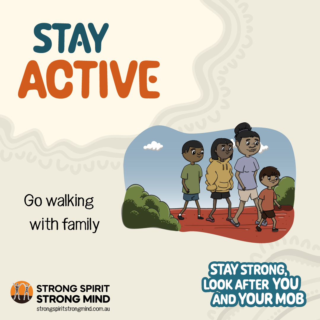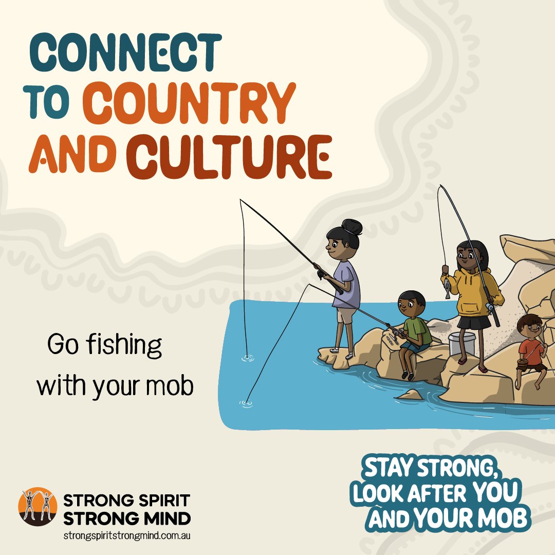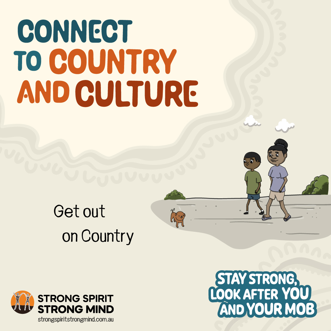 Staying in touch with country and culture is important and it’s a great way to look after yourself and stay strong. Get together with mob on the land and share yarns, go to a local language class or join a dance group.