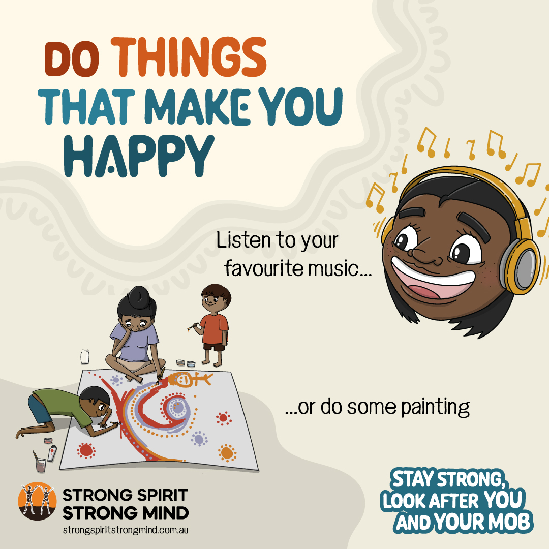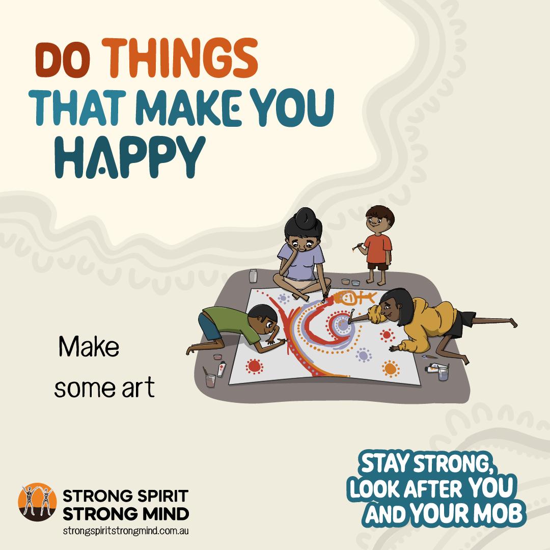 Spending quality time with your mob is what makes life so special, and it’s a great way to look after yourself. It doesn’t have to be face to face, you can call, text or FaceTime. Reach out to someone you feel comfortable to chat with about how you’re feeling.