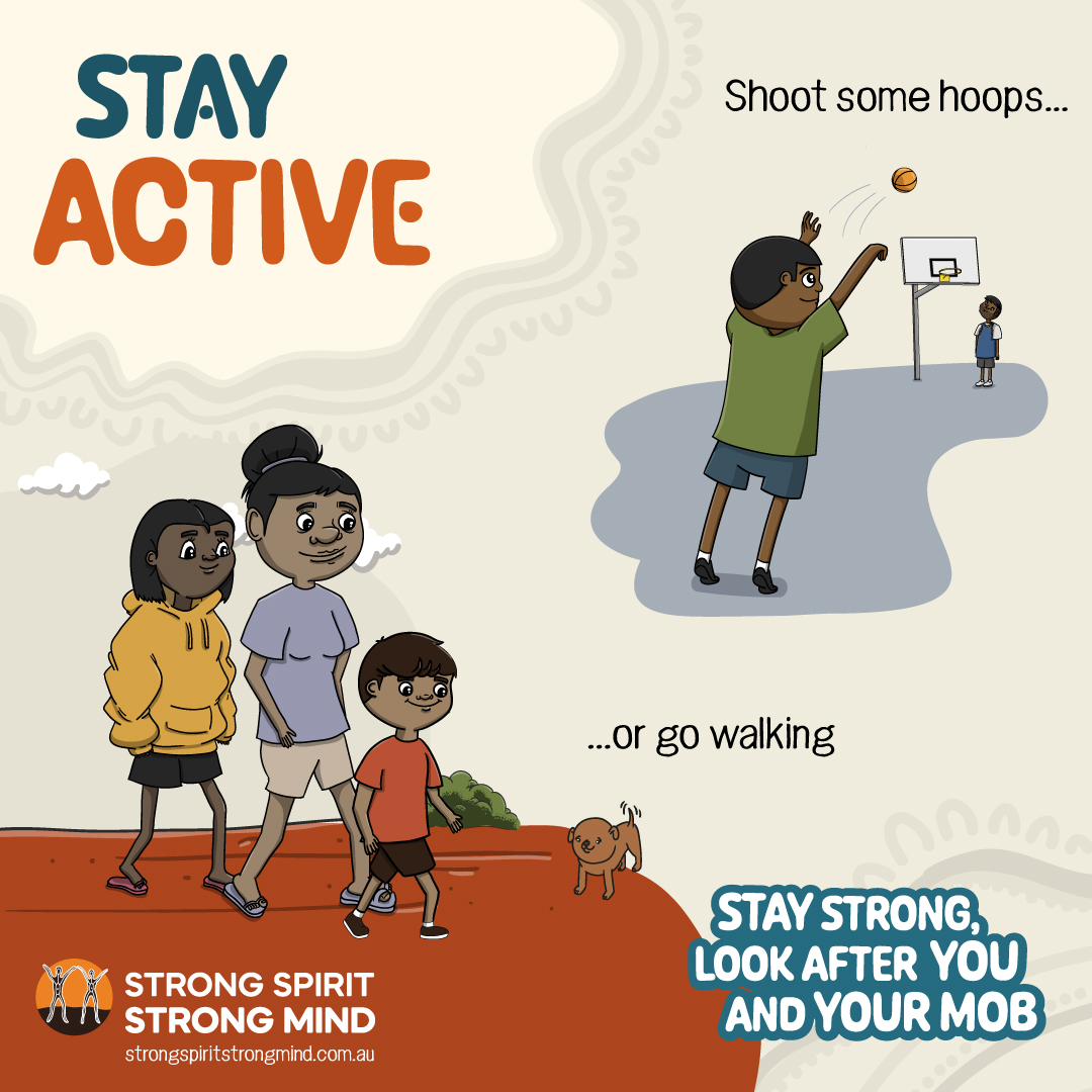 Staying in touch with country and culture is important and it’s a great way to look after yourself and stay strong. Go out bush and hunt for goanna, kangaroo or bush turkey. Have a cuppa with your Nan or Pop and share yarns.